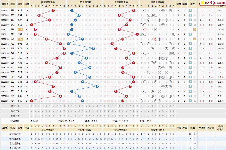 首页 > 排列3预测 > 327期体彩排列3近期历史号码图表